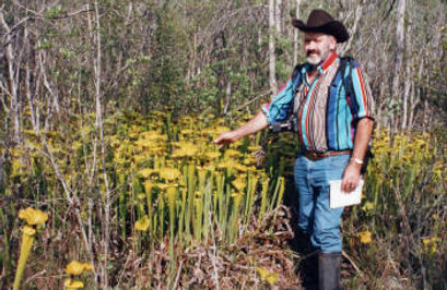 Colin in a field of red tubed Sarracenia flavas - Savannah Apalachicola National Park, Florida, U.S.A.